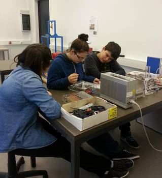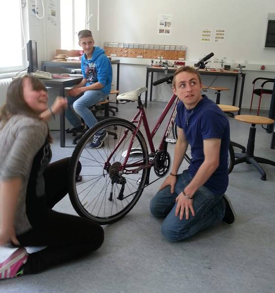 Die Schülerinnen und Schüler führten Versuche zu den Themen Handy, CD-Player, Fahrrad und Sandgussverfahren durch.