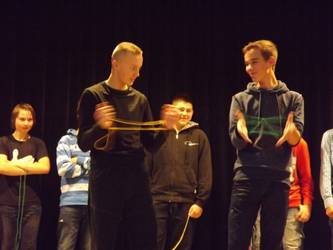 Als Unterhaltungsprogramm führte die Klasse 9d ein Theaterstück auf und die 8d und 9b einen Poetryslam. Die Schüleraustauschgruppe zeigte eine PowerPointpräsentation mit Bildern von ihrem Besuch in Frankreich. Es gab sogar einige "Mitmachaktionen": Zum Beispiel konnte man Buttons herstellen oder auf der vom Kegelverein Irla Erlingshausen aufgebauten Kegelbahn sein Glück versuchen oder sein Können präsentieren.