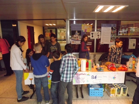 Zusätzlich zu diesen sachbezogenen Themen boten mehrere Klassen an ihren Ständen auch kulinarische Spezialitäten und Getränke an. So gab es neben selbstgemachten Schokocrossies, selbstgemixten Cocktails auch Speisen aus verschiedenen Ländern. Die von den Eltern initiierte Essensmeile mit vielen Spezialitäten aus der ganzen Welt war besonders gut besucht.