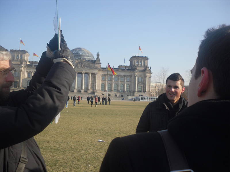 Nach einer dreistündigen Busfahrt erreichten die Schülerinnen und Schüler gemeinsam mit ihren Lehrern den Berliner Hauptbahnhof. Bei eisigen Temperaturen begann hier die geplante Führung durch das Kanzlerviertel zu Fuß. Trotz klirrender Kälte und den daraus resultierenden kalten Füßen hielten die Schülerinnen und Schüler tapfer durch und erfuhren einiges über die Geschichte und Architektur des Bundeskanzleramts, des Reichstages, der Schweizer Botschaft und des Brandenburger Tors. Die Stadtführung endete vor dem Holocaust Mahnmal, dessen bis zu vier Meter hohe graue Stelen bei dem winterkalten Wetter noch bedrohlicher und isolierender wirkten als sonst. Anschließend besuchten die Schülerinnen und Schüler die Gedenkstätte des Mahnmals und hatten die Möglichkeit sich mit dem schrecklichen Ausmaß der Verfolgungs- und Vernichtungspolitik der Nazis anhand von Schicksalen einzelner Familien auseinanderzusetzen.
