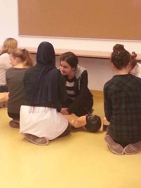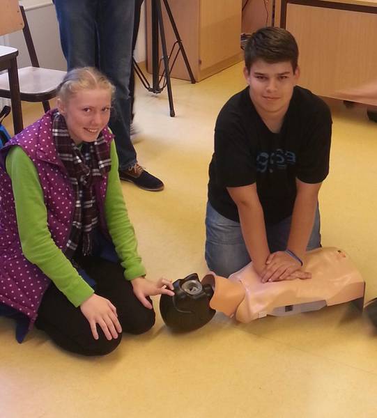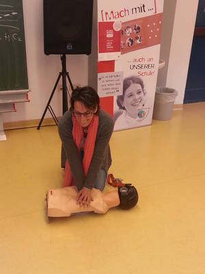 Anlässlich der „Woche der Wiederbelebung“ vom 22. bis 26.9.2014 führte das DRK gemeinsam mit unserem 9. Jahrgang einen Aktionstag unter dem Motto „Ein Leben retten. 100 Pro Reanimation“ durch.