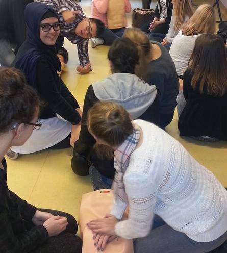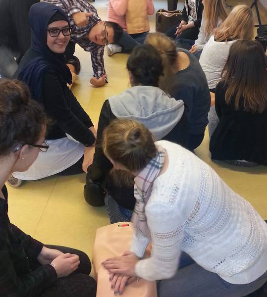 Alle Schülerinnen und Schüler des Jahrganges wurden in Wiederbelebungsmaßnahmen ausgebildet. Die Resonanz der Teilnehmenden und der Lehrer war sehr gut. Ausnahmslos waren alle mit großer Begeisterung dabei. Viele wollen den Führerschein machen und dazu gehört auch der Erste-Hilfe-Kurs, für den dieser Aktionstag eine gute Vorbereitung ist.