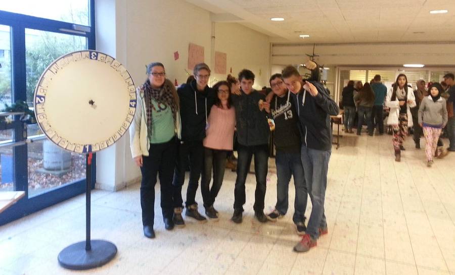 Danach war die Eingangshalle gefüllt mit Ständen, an denen gebastelt, gespielt oder weihnachtlich Kulinarisches verkauft wurde. Die Kosten für den Wareneinsatz wurden vom Förderverein übernommen. Da Weihnachten maßgeblich das Fest der Nächstenliebe sein sollte, beschloss die Schülervertretung die Einnahmen für einen wohltätigen Zweck zu spenden. Wo genau das Geld hingehen soll, wird zu Beginn des neuen Jahres entschieden, wenn der Gesamterlös feststeht.