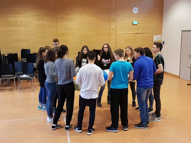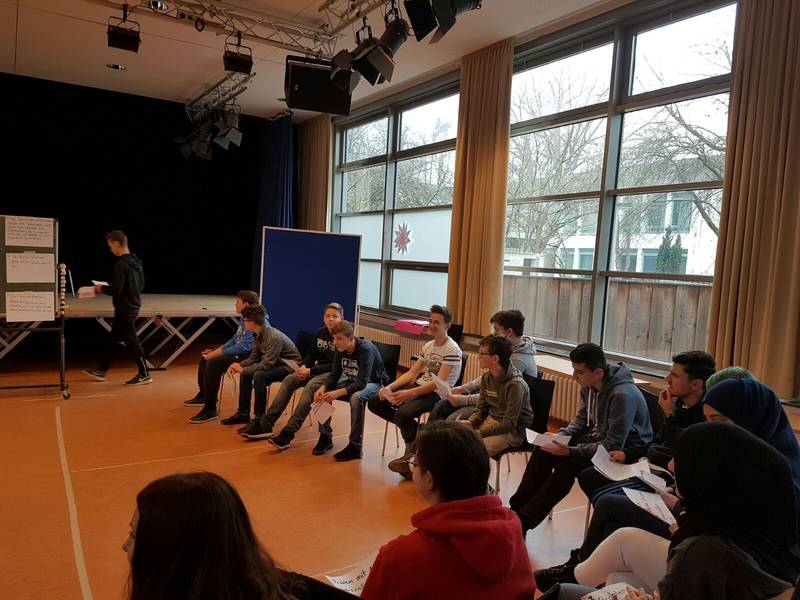 Die bereits tätigen Streitschlichter aus den 9. Klassen (Jelena, Dilif, Meda, Francesco und Edgar) wirkten aktiv und engagiert an der Ausbildung der neuen Streitschlichter mit und konnten ihnen wichtige Tipps aus ihrem eigenen Erfahrungsschatz geben.