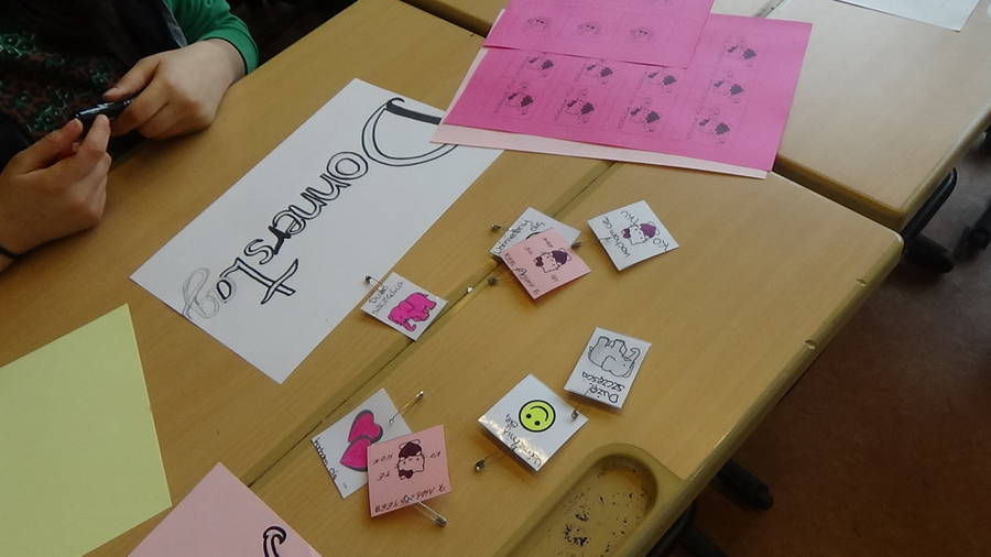 Wir haben auch lustige Wappen in verschiedenen Sprachen gefertigt. Unser Ziel war es andere Kulturen besser kennenzulernen.