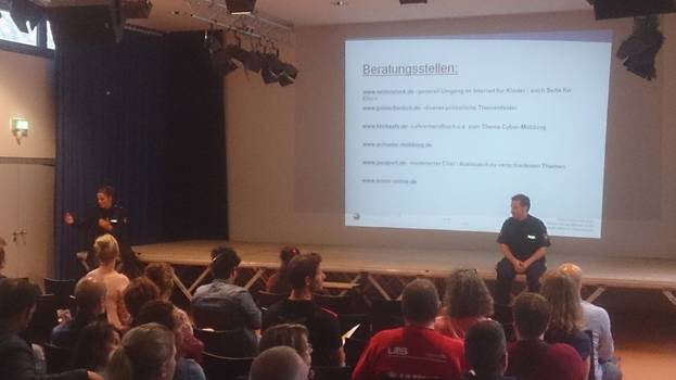 Hier ein Stück Aufklärungsarbeit zu leisten und Eltern für einen verantwortungsvollen Umgang zu sensibilisieren war unser Anliegen. Dazu hatten wir drei Experten von der Polizei Hannover zu Gast, die die Zuhörer auf eindrucksvolle Art und Weise an das Thema herangeführt haben und ihnen hilfreiche und sinnvolle Tipps gaben. Dementsprechend gilt unserer Dank Frau Preiß, Herrn Seegers und Herrn Ohlendorf von der Polizei Hannover für ihren Vortrag.