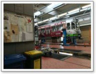 Wir sind Um 8.00 Uhr von der RSM losgegangen. Bei der Üstra in Döhren machten wir eine Vollbremsung mit ungefähr 30 km/h. Bei der Üstra waren wir in der Werkstatt. Wir durften unter die Gleise und durften eine Bahn von unten anschauen. Unter der Bahn roch es sehr stark nach Öl und Benzin.