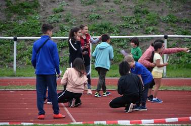 Neben dem Auf- und Abbau von 12 Sport- und Spaßstationen, z. B. Eierlauf, Gummistiefelweitwurf oder Sackhüpfen, unterstützten sie beim Dreikampf Laufen-Springen-Werfen. So mussten die Jugendlichen u. a. die Weiten messen, die Zeiten stoppen und den Grundschülern bei der Durchführung der leichtathletischen Disziplinen helfen. Für die tatkräftige Unterstützung bedankten sich die Erst- bis Viertklässler mit einem tosenden Applaus bei den Mädchen und Jungen des WPK 7 Sport.