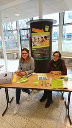 Neben den Hauptfächern Deutsch, Englisch und Mathe konnte man bei dem Infostand des Fachs Arbeit und Wirtschaft seine Geldscheine auf Echtheit prüfen lassen, im Fach Werte & Normen etwas über die verschiedenen Weltreligionen erfahren und im Fach Sport sein Gleichgewicht auf der Slackline austesten. Im naturwissenschaftlichen Bereich wurden Experimente durchgeführt und für die musikalisch Begabten standen Musikinstrumente für eine kleine Jam-Session bereit. Neben den Fachbereichen wurden auch die an der Realschule Misburg laufenden Projekte vorgestellt. So töpferte der Künstler Herr Uzunyalya, der zur Zeit im Rahmen der Projektes "pimp my toilet" zusammen mit den Schülerinnen und Schülern die Toiletten unserer Schule verschönert, gemeinsam mit den jungen Besuchern. Frau Paßberg und Frau Stichernaht vom Chancenwerk stellten die Lernkaskade vor - ein Nachhilfeprogramm von Schülern für Schüler. Auch die Streitschlichter an unserer Schule unter der Leitung von Frau Reimann boten Team- und Kooperationsspiele an, die einem ein wenig körperliches Geschick abverlangten. Abgerundet wurde das Programm durch ein großes Angebot von Kuchen und Getränken, mit dem die Klasse 10a von Frau Krajnovic die Besucher versorgte.