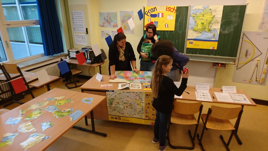 Im Eingangsbereich der Schule begrüßten einen die Schülerinnen und Schüler der Klasse 9d sehr freundlich. Jeder zukünftige Fünftklässler erhielt ein Namensschild, einen Lageplan mit Fragebogen - und schon ging die Rallye durch die Schule los. Den Eltern wurden Führungen durch die Schule angeboten. Bei ihrer Erkundungstour durch die Schule konnten die Teilnehmer viel entdecken, ausprobieren und in viele Themengebiete ihrer zukünftigen Unterrichtsfächer hineinschnuppern.
