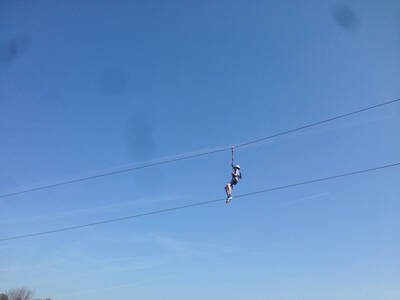 Als wir in unserer Unterkunft „Haus Waterdelle“ Mittag gegessen hatten, haben wir uns auf den Weg zum Kletterpark gemacht. Es gehörte schon Mut dazu, hoch über den Dünen herumzuklettern.