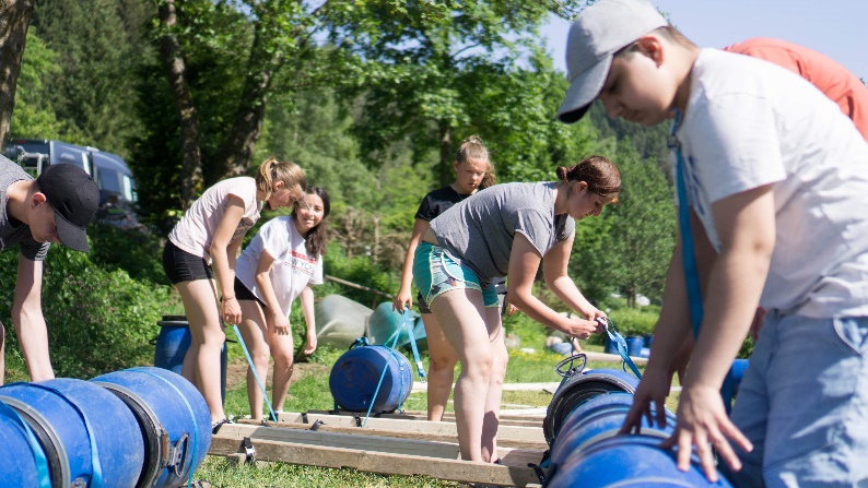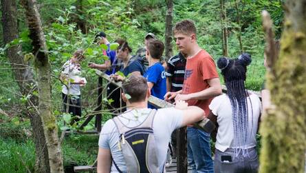 Dienstag ging es dann auf zur ersten Wanderung zur Okertalsperre, wo die Schülerinnen und Schüler aus Bausätzen Flöße zusammenschusterten und auf ihre Wassertauglichkeit überprüften. Tatsächlich schwammen die Gefährte ausgezeichnet, den versprochenen Schatz entdeckten wir aber erst mit viel Hilfe der an Land zurückgebliebenen. Auf dem Rückweg von der Sommerhitze auf eine harte Probe gestellt, wurde sich ein paar Stunden erholt und abends dann eine Geocaching-Wanderung durch den nahen Wald angetreten, auf deren Route die Schüler den Umgang mit dem GPS-Gerät lernten.