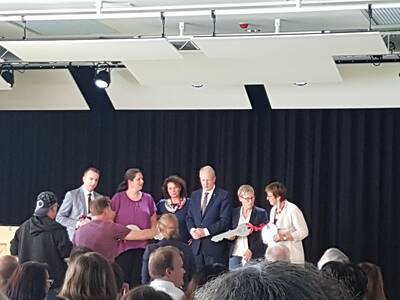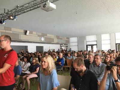Zu Gast waren neben der Schulleitung und dem Lehrerkollegium der Realschule Misburg, die Schulleiter und Lehrer der weiteren an dem Mensaangebot teilhabenden Schulen, Ratsmitglieder, Verwaltungsbeamte, der leitende Architekt für den Bau des Mensagebäudes und der Oberbürgermeister von Hannover: Stefan Schostok.