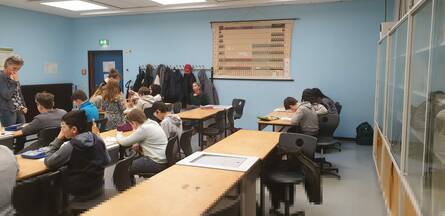 Auch das Fach Französisch, das an der Realschule Misburg ab dem 6. Schuljahr als Wahlpflichtkurs unterrichtet wird, machte den jungen Besuchern sehr viel Spaß. Sie lernten bei Frau Baxmann, wie man sich auf Französisch begrüßt, einander gegenseitig vorstellt und sich wieder verabschiedet. Die Zahlen von 1 - 12 wurden in einem abschließenden Bingospiel auf Französisch gefestigt.