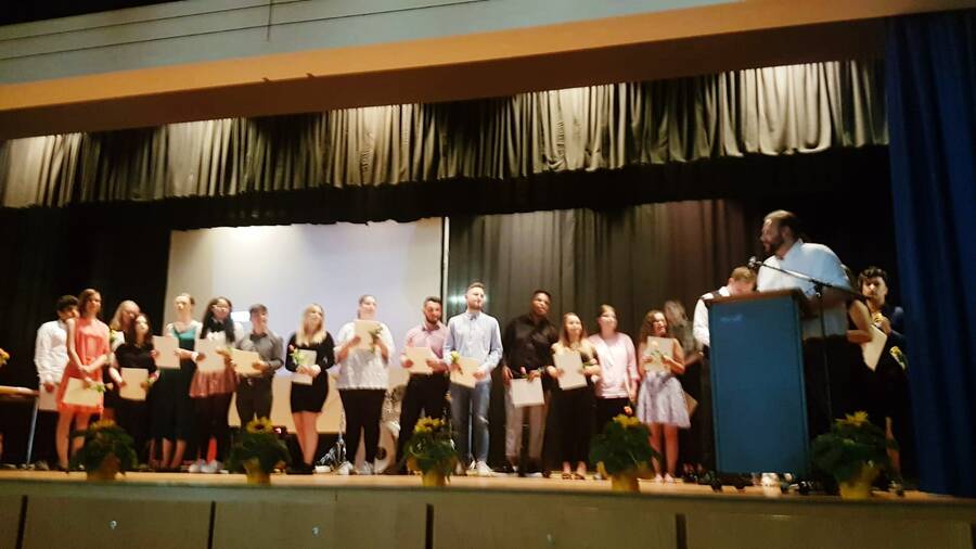 In seiner Rede konnte sich Herr Bormann als Schulleiter ganz besonders über zahlreiche erfolgreiche Abschlüsse freuen: Von 108 Absolventinnen und Absolventen hatten 45 ihren Erweiterten Sekundarabschluss I erlangt. 49 Schülerinnen und Schüler erhielten ihren Sekundarabschluss I - Realschulabschluss.