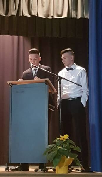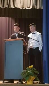Mit einem lustigen Gedicht nahmen die vier Klassenlehrer/-innen in alphabetischer Reihenfolge Abschied von ihren Schülern. Im Anschluss bedankten sich noch die Klassensprecher/-innen im Namen ihrer Klassen bei ihren Lehrern und es erfolgte die Zeugnisausgabe.