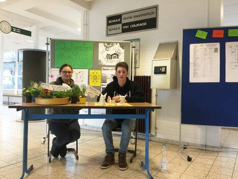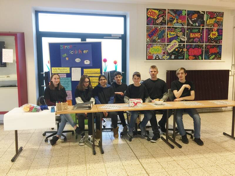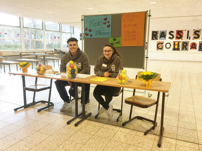 Das Empfangskomitee, bestehend aus Schülerinnen und Schülern der Klassen 7b und 10d, bot den interessierten Besuchern Führungen durch die Schule an, damit sie sich zu Beginn des nächsten Schuljahres schon ein wenig auskennen.
