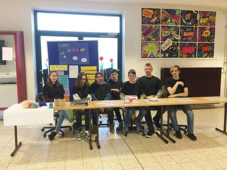 Neben den vielfältigen und tollen Aktionen, die von den verschiedenen Fachbereichen angeboten wurden, verdient besonders das Catering der Klasse 10d ein großes Lob. Denn es wurden neben dem üblichen Verkauf von Kaffee und Kuchen diesmal auch herzhafte Speisen angeboten, die bei den Besuchern sehr gut ankamen. Alles wurde von den Schülerinnen und Schülern selbstverständlich selbst zubereitet.