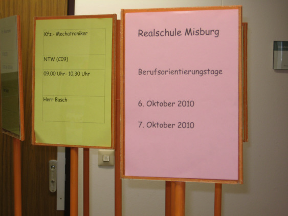 Die Berufsorientierungstage wurden hauptsächlich von sieben Schülern aus dem 10. Jahrgang organisiert. Außerdem hat sich die „Produktionsabteilung“ der Schülerfirma der Maximilian-Kolbe-Schule an den Vorbereitungen beteiligt und die Hinweisschilder für die Workshops angefertigt. Auch interessierte Förderschüler nahmen am Workshop teil.