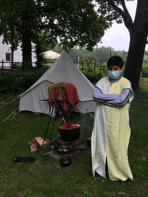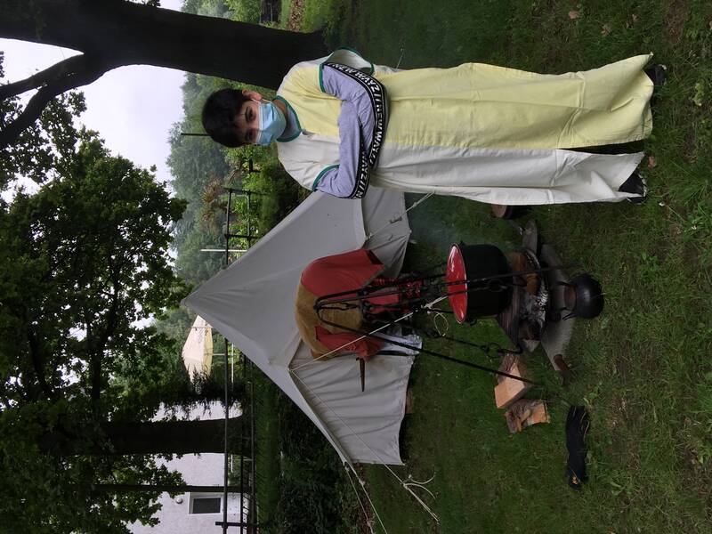 Die Kulisse war bei der Ankunft schon perfekt. Ein Lagerzelt, eine gedeckte Tafel unter einem Sonnensegel sowie ein riesiger Topf auf dem offenen Feuer sorgte sogleich für eine mittelalterliche Stimmung
