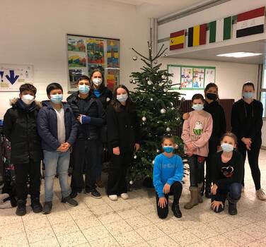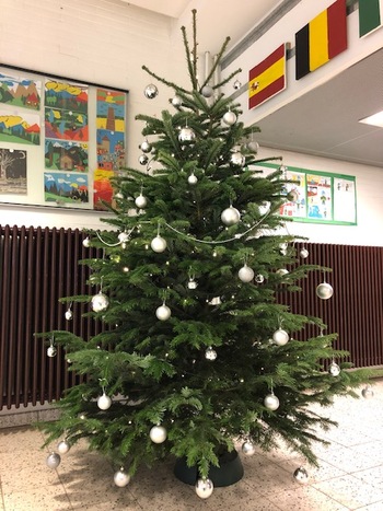 Am Freitag, den 26.11.2021, schmückten die Schülerinnen und Schüler der 6c gemeinsam mit Frau Mattern den diesjährigen Weihnachtsbaum der Realschule Misburg. Der Weihnachtsbaum steht in der Pausenhalle links vorm Eingang des Sekretariats.
