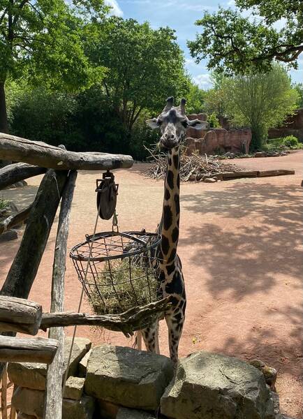 Wir waren am Dienstag, den 17.05. mit Herrn Pötke und Frau Reimann im Zoo Hannover. Dort haben wir Ziegen gestreichelt, Löwen angeschaut und noch ganz viele andere Tiere gesehen. Schön war, dass wir den Zoo alleine mit unseren Freunden erkunden durften. Nicht so schön war, dass die Zeit so schnell vergangen ist. Wir haben daher nicht alles geschafft und die Elefanten haben wir nicht gefunden. Dafür waren wir zwei Mal bei den Ziegen und die waren richtig süß. Eine Baby-Ziege hat an meinem Schnürsenkel gekaut und wollte damit gar nicht mehr aufhören.