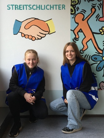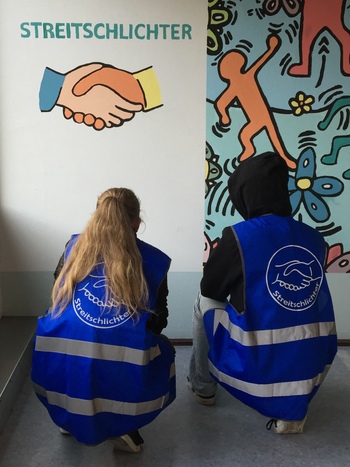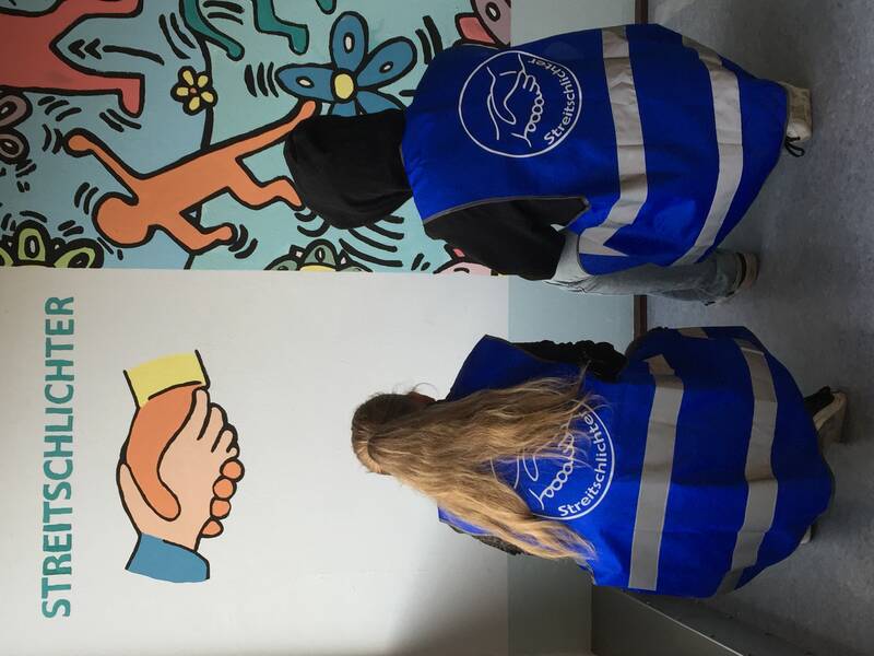 Die Streitschlichter*innen unterstützen in den 2. Pausen die Lehrkräfte bei ihren Pausenaufsichten und leisten damit einen wichtigen Beitrag für ein freundliches und friedliches Miteinander an unserer Schule.
