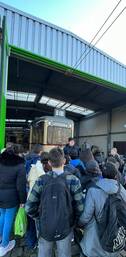 Dann wurde uns in einer Halle eine sehr alte Straßenbahn von 1928 gezeigt. Danach sind wir in eine grüne Straßenbahn eingestiegen und haben bei 30 km/h eine Notbremsung gemacht. Für eine Notbremsung benötigt die Bahn Sand. Deswegen tankt die Straßenbahn Sand und kein Benzin, denn die Bahn fährt elektrisch.