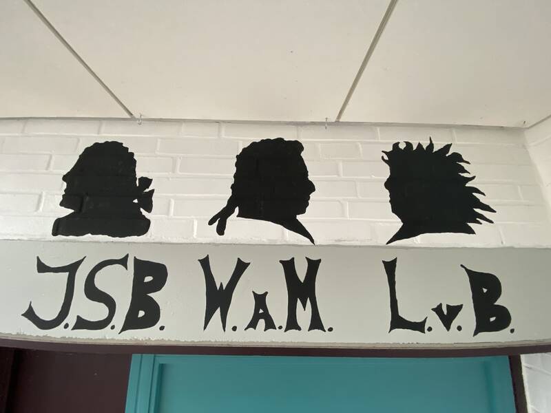 Neben unterschiedlichen Instrumenten thronen nun über der Eingangstür zum Musikraum die Köpfe der drei größten Komponisten aller Zeiten:
