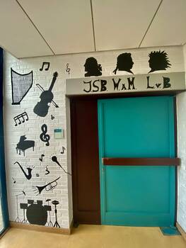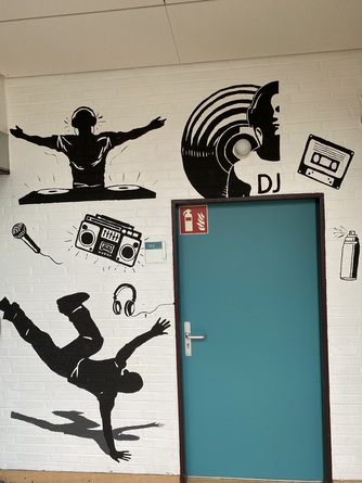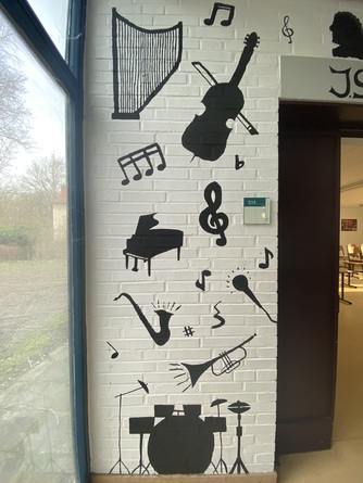 Im Rahmen eines Projektes hat Herr Krekic mit einigen Schülerinnen der 10b den Eingang zum Musikraum verschönert.