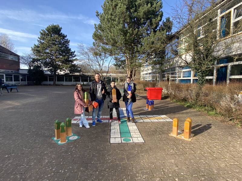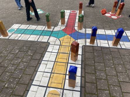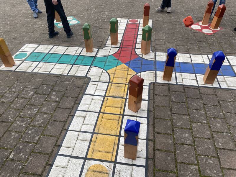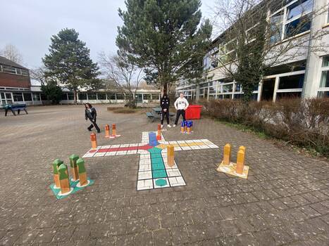 Nachdem die Stadt Hannover einige Pausenhöfe der Realschule Misburg mit gemalten Spielflächen versehen hatte, fehlten nur noch die passenden Spielfiguren dazu. Deshalb stellten die Schülerinnen und Schüler der Klassen 8a und 8c im Technikunterricht von Herrn Koster die Spielfiguren für das Mensch-Ärgere-Dich-Nicht-Spiel her.
