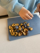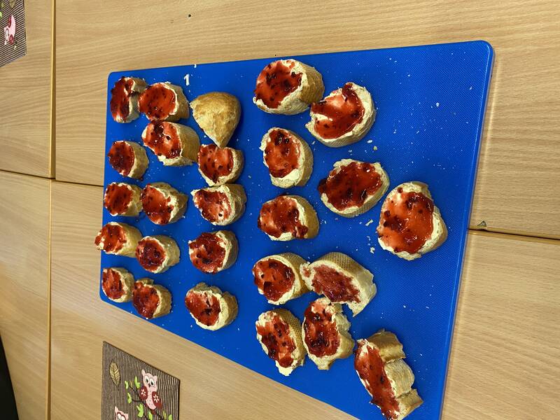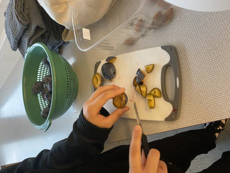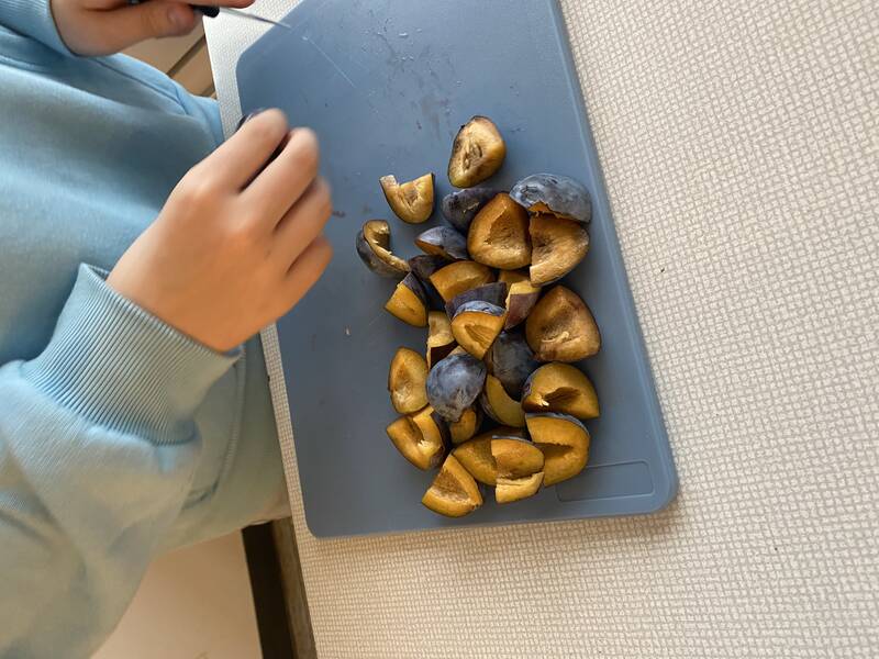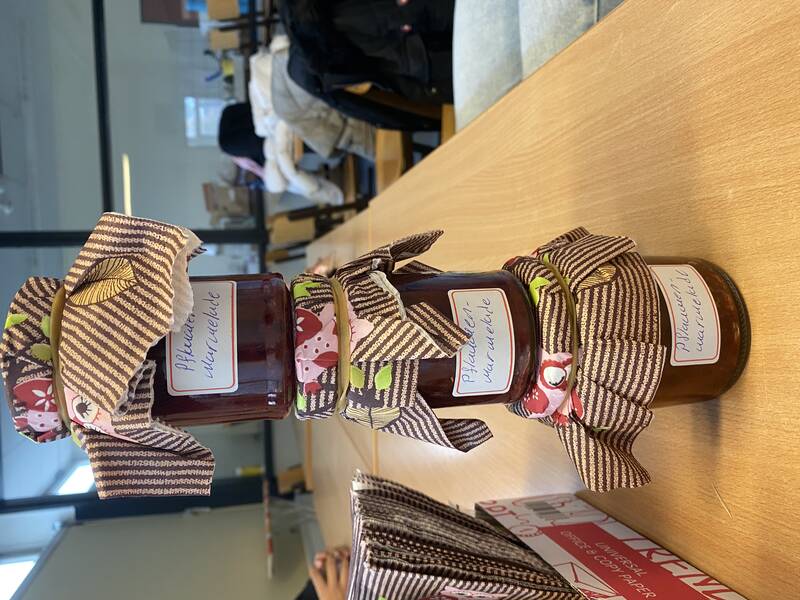 Am ersten Tag haben wir Marmelade in der Küche gemacht. Zuerst haben wir das Rezept für Pflaumenmarmelade gelesen und eine Einkaufsliste erstellt. Dann haben wir die Zutaten im Supermarkt gekauft. Zurück in der Küche mussten die Arbeitsplätze vorbereitet werden. Die Pflaumen wurden abgespült und in Würfel geschnitten. Alle Zutaten wurden im Kochtopf zu Mus gekocht. Die heiße Marmelade haben wir in Gläser gefüllt. Wir konnten die fertige Marmelade probieren – lecker! Abschließend wurde jedes Glas mit Serviette und Gummiband dekoriert. Wer wollte konnte ein oder zwei Gläser mit nach Hause nehmen. Die restlichen Gläser haben wir im Lehrerzimmer aufgestellt. Zum Schluss haben wir die Küche aufgeräumt und sauber gemacht.