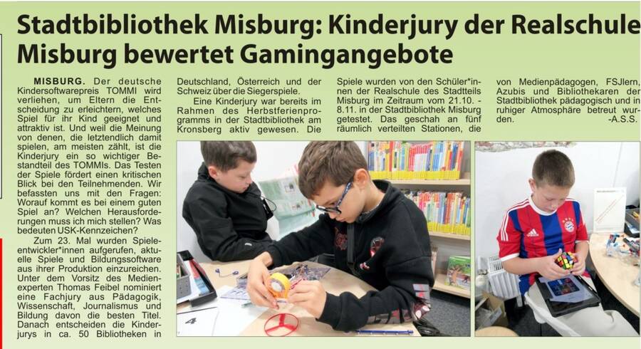 Zwischen dem 21.10. und 08.11.2024 haben Schülerinnen und Schüler des 5. und 6. Jahrgangs Gamingangebote in der Stadtbibliothek Misburg getestet.