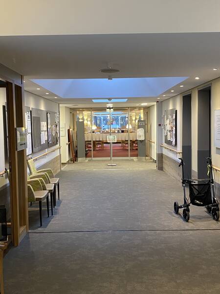 Die inklusiven Schülerinnen und Schüler des achten Jahrgangs besuchten im Dezember 2024 das Wohnstift GDA Kleefeld für Menschen im Alter. Hier leben die Bewohnerinnen und Bewohner in einzelnen Appartements. Nach einer Einführung bei Getränken und Keksen wurden wir durch das Gebäude mit Speiseraum (tägliches Mittagsmenü), Schwimmbad/Sauna und Beschäftigungsangeboten geführt. Auch in den Tagespflegebereich konnten wir schnuppern. Hier kommen tagsüber alte Personen hin, die ihren Alltag nicht mehr ohne unterstützende und/oder pflegerische Hilfe bewältigen können. Im Bereich der Pflegestation sind Menschen untergebracht, die dauerhafte Betreuung benötigen oder schon dement sind.