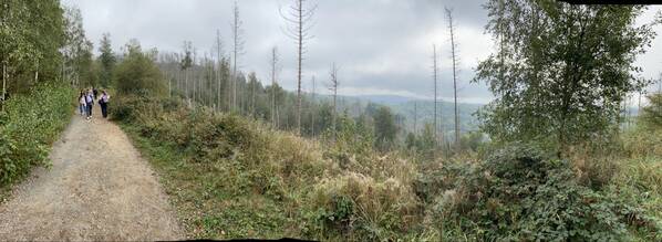 Schließlich ging die Wanderung weiter - zum Glück bergab :). Auf ihrem Weg nach unten kamen die Schülerinnen und Schüler an dem Luchsgehege vorbei und einige hatten auch die Möglichkeit ein paar Blicke auf die scheuen Tiere zu erhaschen.