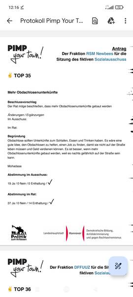 Über zwei Jahre später wurden wir nun zur Sitzung des Sozialausschusses im Neuen Rathaus eingeladen, da es eine Präsentation zu unserem Antrag „Mehr Obdachlosenunterkünfte in Hannover“ gab. Während dieser Sitzung wurde erklärt wie viele Obdachlosenunterkünfte es gibt, ob diese für Männer, Frauen oder Familien gedacht sind und wie die Ausstattung ist. Wir wurden nach Wünschen zur Verbesserung gefragt und konnten diese im Ausschuss äußern.