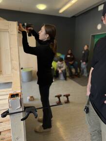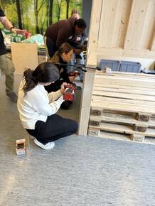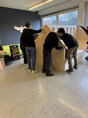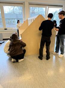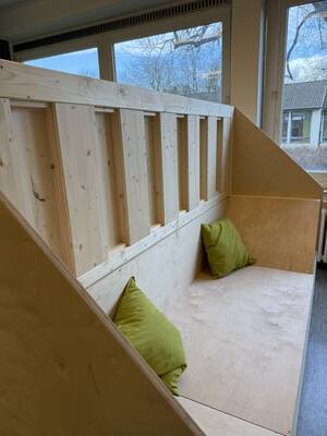 Unter Anleitung entstand ein Möbelstück mit den Maßen 1,86 m x 2,46 m, das durch Kreativität und Zusammenarbeit überzeugt. Die Schüler*innen arbeiteten mit großem Engagement und konnten stolz auf das Ergebnis blicken.