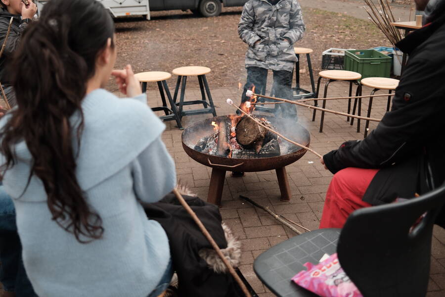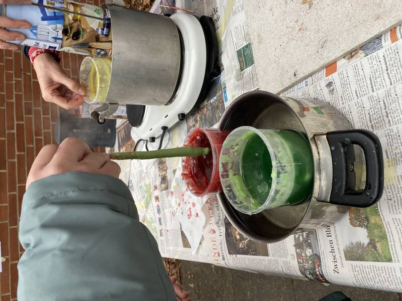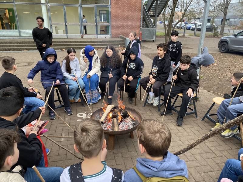 Auch dieses Jahr fand am letzten Schultag ein Winterfest für den 5. und 6. Jahrgang statt. Dabei gab es im Freizeitbereich und auf dem Pausenhof viel zu entdecken und zu tun. Wir konnten mit Leder arbeiten und Metall schmieden, das erforderte Geschick und Kraft zugleich. Bei Frau Mattern konnten wir eigene Kerzen ziehen und nebenan bei Herrn Koster und Herrn Everding entweder Marshmallows über dem Feuer rösten oder unser Geschick mit dem Hammer beim Nägel versenken unter Beweis stellen.