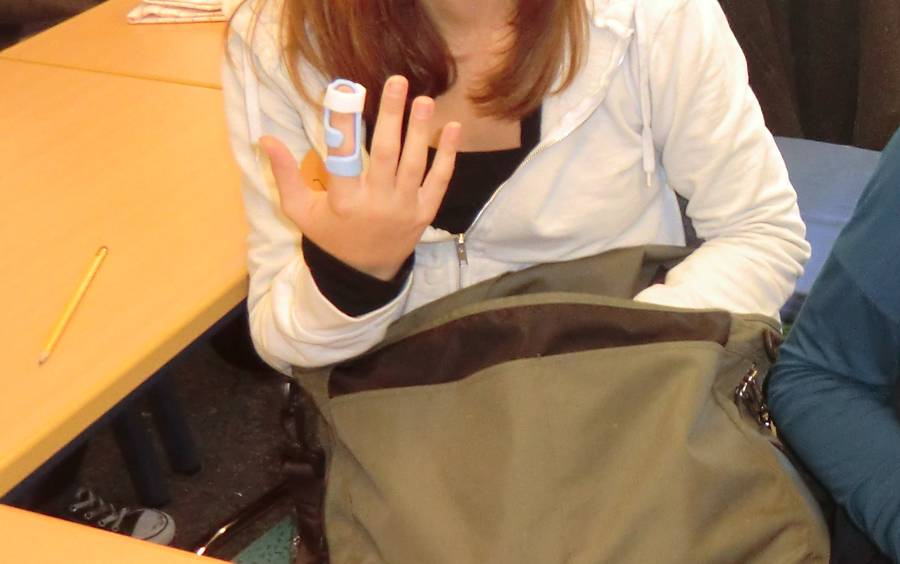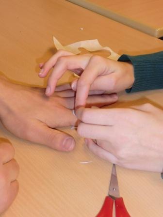 Dort fertigten wir Fingerschienen nach Anleitung und mit Unterstützung der Auszubildenden an.