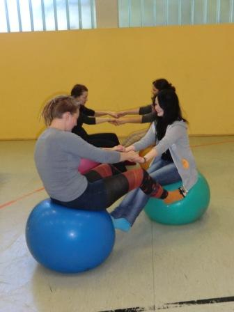 Die erste Gruppe blieb im Fachschulzentrum um eine Fingerschiene anzufertigen, während die zweite Gruppe in die Sporthalle ging um Gleichgewichtsübungen durchzuführen.