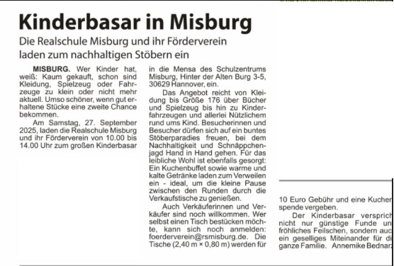 » Am 27.09.2025: Kinderbasar in der Mensa des Schulzentrums Misburg