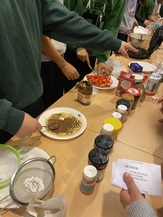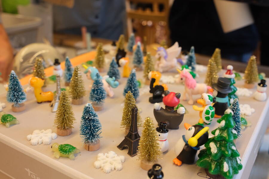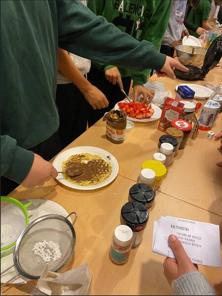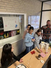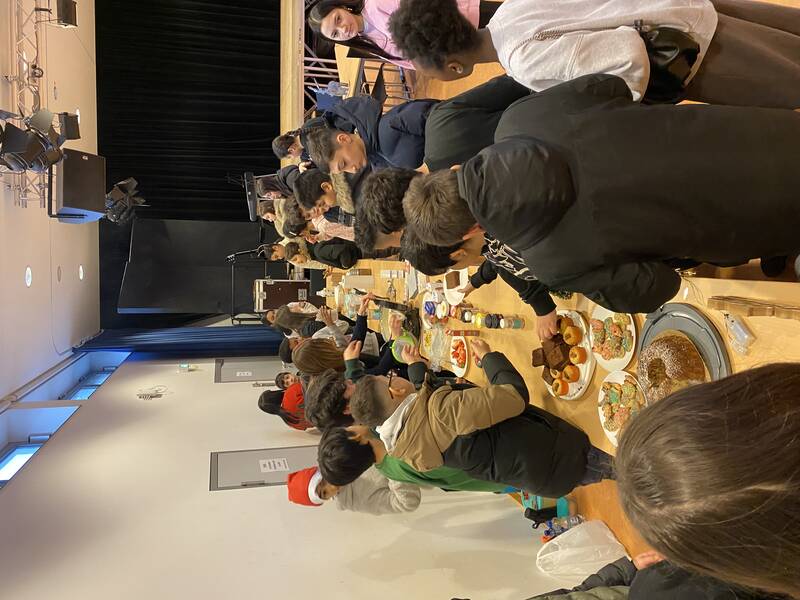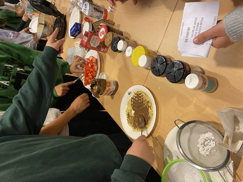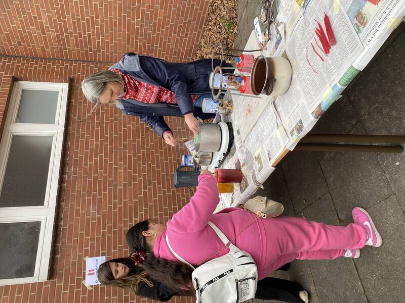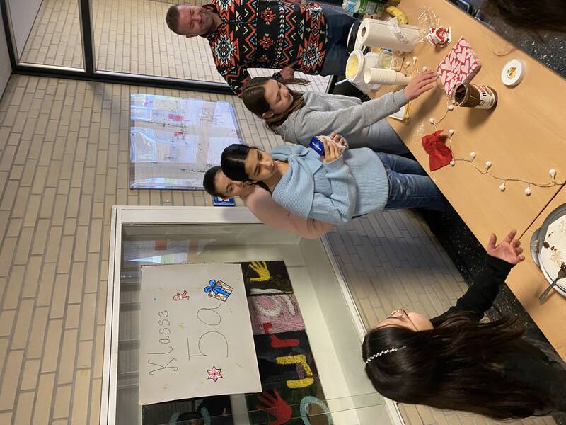 Auch im Innenbereich hatten wir alle Hände voll zu tun: Es galt Schneekugeln zu gestalten und zu befüllen, Weihnachtskarten und Fensterbilder zu basteln, Kerzen zu verzieren und Donuts, Waffeln, Plätzchen und allerlei Köstlichkeiten aus aller Welt zu essen.
