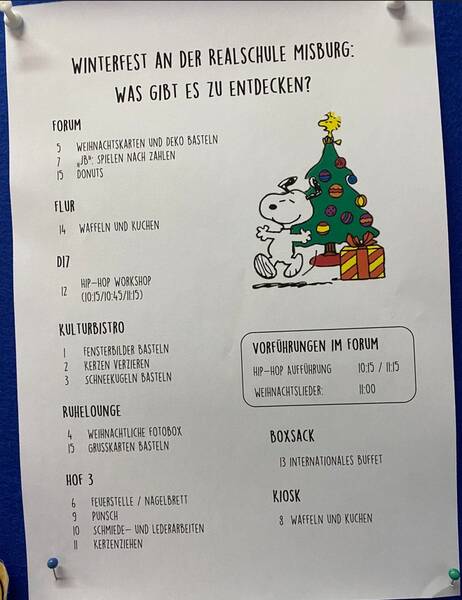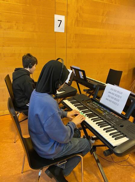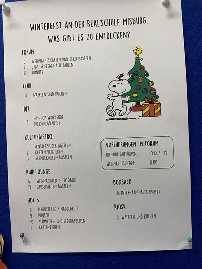 Auch für Musik und Bewegung war gesorgt: Neben einer Gesangsdarbietung für alle konnte man Weihnachtslieder auf dem Keyboard oder die Grundlagen im Hip-Hop Tanz lernen. Am Mittag ging es dann zuerst ans Aufräumen und danach in die wohlverdienten Winterferien.