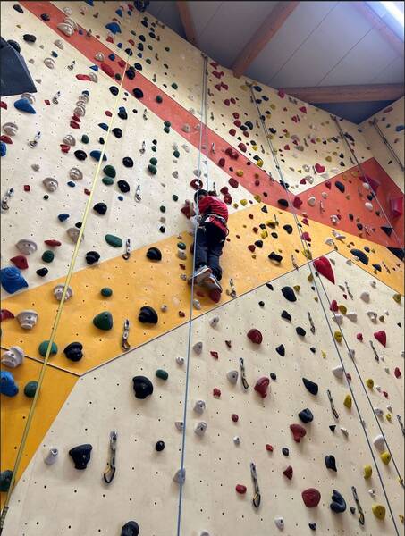 Da die meisten von uns im Klettern noch unerfahren waren, sind die ersten Höhenmeter überschaubar gewesen. Doch als der erste Schüler die Hallendecke erreichte, hat das „Kletterfieber“ alle angesteckt und viele SchülerInnen der Klasse kamen bis zum ihrem selbst gesetzten Ziel der gewählten Kletterstrecken.