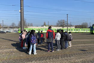 Die Klasse 5c hat am 19. März eine kleine Betriebserkundung auf dem Üstra-Gelände in Döhren gemacht. Anfangs wurde die Klasse über die Entwicklung der hannoverschen Stadtbahnen informiert. Anschließend ging es darum, wie man sich richtig in der Bahn verhält und was es in den Untergrund-Stationen zu beachten gibt. Es zeigte sich, dass in der Klasse schon einiges an Vorwissen abrufbar war.