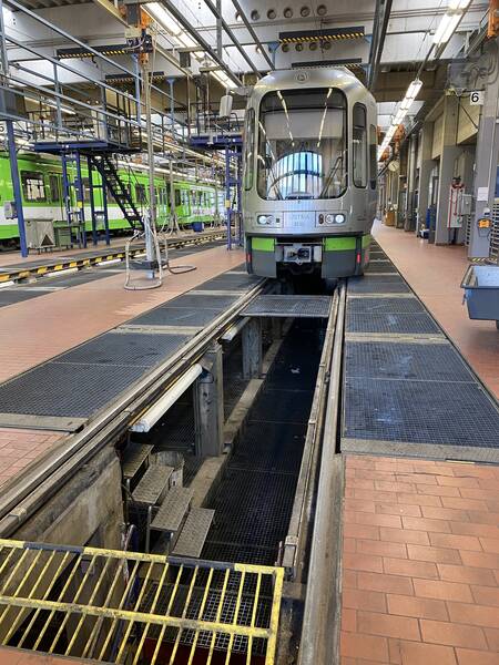 Am Ende der Besichtigung ging es in die Waschanlage der Straßenbahnen. Glücklicherweise kam es zu keiner Dusche von oben!