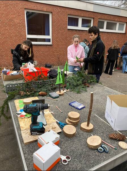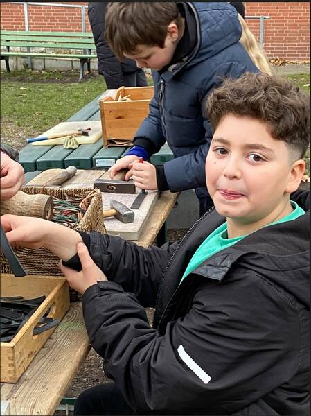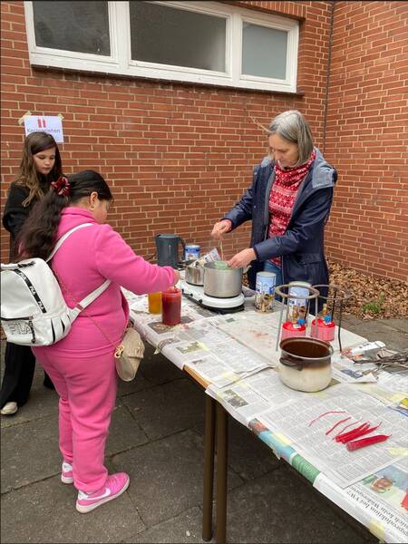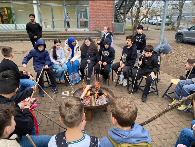 Auch dieses Jahr fand am letzten Schultag ein Winterfest für den 5. und 6. Jahrgang statt. Dabei gab es im Freizeitbereich und auf dem Pausenhof viel zu entdecken und zu tun. Wir konnten mit Leder arbeiten und Metall schmieden, das erforderte Geschick und Kraft zugleich. Bei Frau Mattern konnten wir eigene Kerzen ziehen und nebenan bei Herrn Koster und Herrn Everding entweder Marshmallows über dem Feuer rösten oder unser Geschick mit dem Hammer beim Nägel versenken unter Beweis stellen.