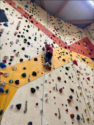 Da die meisten von uns im Klettern noch unerfahren waren, sind die ersten Höhenmeter überschaubar gewesen. Doch als der erste Schüler die Hallendecke erreichte, hat das „Kletterfieber“ alle angesteckt und viele SchülerInnen der Klasse kamen bis zum ihrem selbst gesetzten Ziel der gewählten Kletterstrecken.