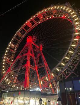 An einem Abend wurde auch der Wiener Prater mit seinen Achterbahnen, Riesenrädern und spektakulären Fahrgeschäften unsicher gemacht - mit einem typischen Schnitzel oder Hähndl zum Abendessen.