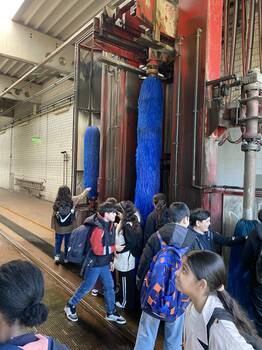 Am Ende der Besichtigung ging es in die Waschanlage der Straßenbahnen. Glücklicherweise kam es zu keiner Dusche von oben!